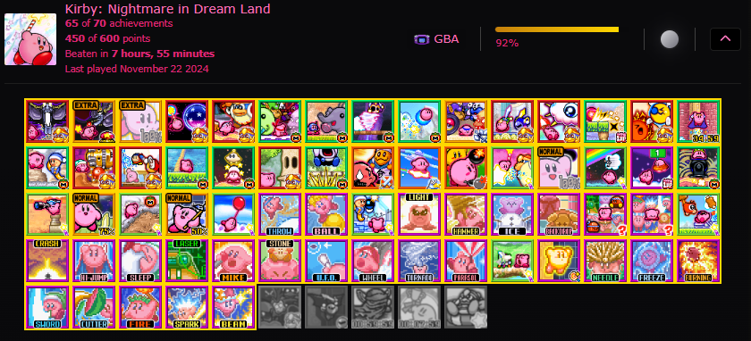 Kirby; Nightmare In Dreamland Retroachievements 100% Run!